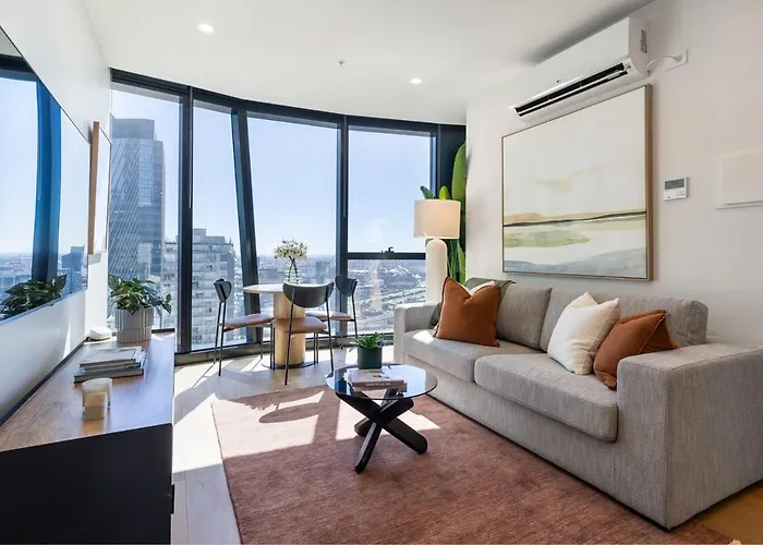 Das A Beautifully Designed, High-Floor 1-Bd Apartment Melbourne City befindet sich in Melbourne City, nur 20 Fußminuten von der Eureka Skydeck 88 Aussichtsplattform entfernt, und bietet eine Sauna und ein Hallenbad. South Bank ist in einer Entfernung von 2 km von den Apartments.